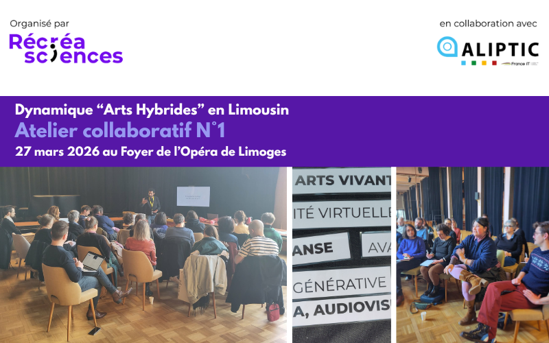 Retour sur le premier atelier de travail « arts hybrides » organisé avec Récréasciences en partenariat avec ALIPTIC, accueilli au Foyer de l’Opéra vendredi 27 mars 2026.